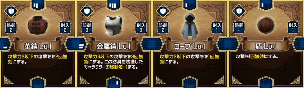 ※同レベルの武器または防具を2つ所持している場合、1つレベルが上の同カテゴリのアイテム1つと取引可能です。