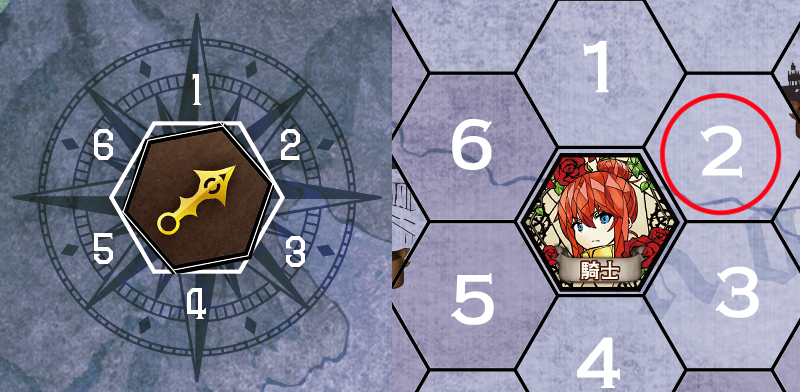 ※該当のマスにエネミー/NPCが出現できない場合は、時計回りに隣のマスに出現させます。そのマスも出現できない場合はさらに隣のマス、1〜6のいずれのマスも出現できない場合は本来出現するはずだったマスからみてコンパスの針の位置に出現させます。