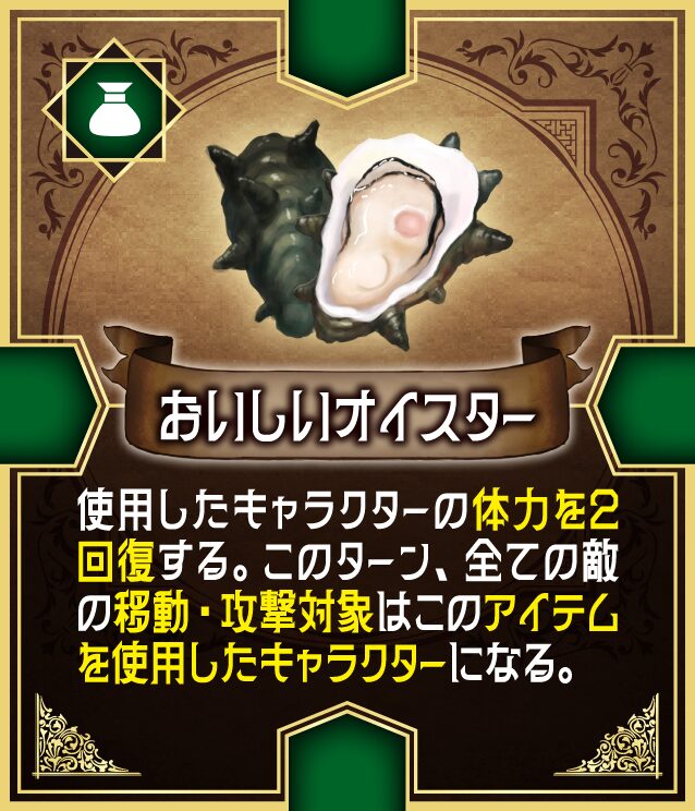 また、アイテムカードが用意されている数を超過してアイテムを入手する場合、そのカードが存在しなければ入手は失敗し、行動力を消費して終わります。